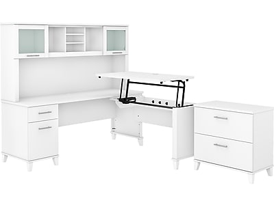 Bush Furniture Somerset 72 W 3 Position Sit To Stand L Shaped Desk With Hutch And File Cabinet White Set016wh Staples